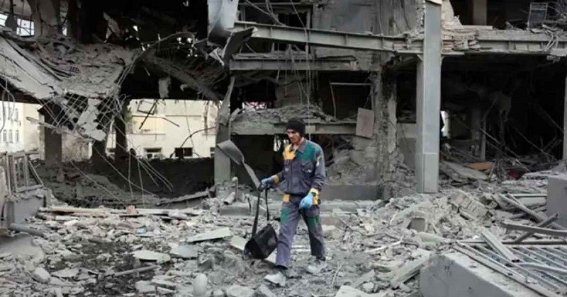তেহরানের বাহারিস্তানে বিমান হামলায় ক্ষতিগ্রস্ত বহুতল ভবনের ধ্বংসস্তূপ